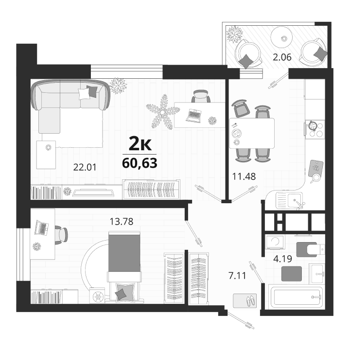 Развитая социальная инфраструктура: 3 детских сада, школа, большой фитнес-центр Balance, магазины, рестораны, сервисы и многое другое.