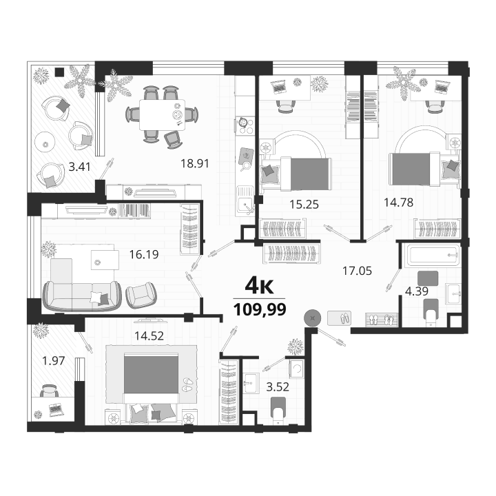 Видеонаблюдение, удобная навигация, система антиобледенения и грязезащитное покрытие при входе для безопасности жителей. В каждом подъезде имеется колясочная для хранения колясок, велосипедов и лапомойка для питомцев.